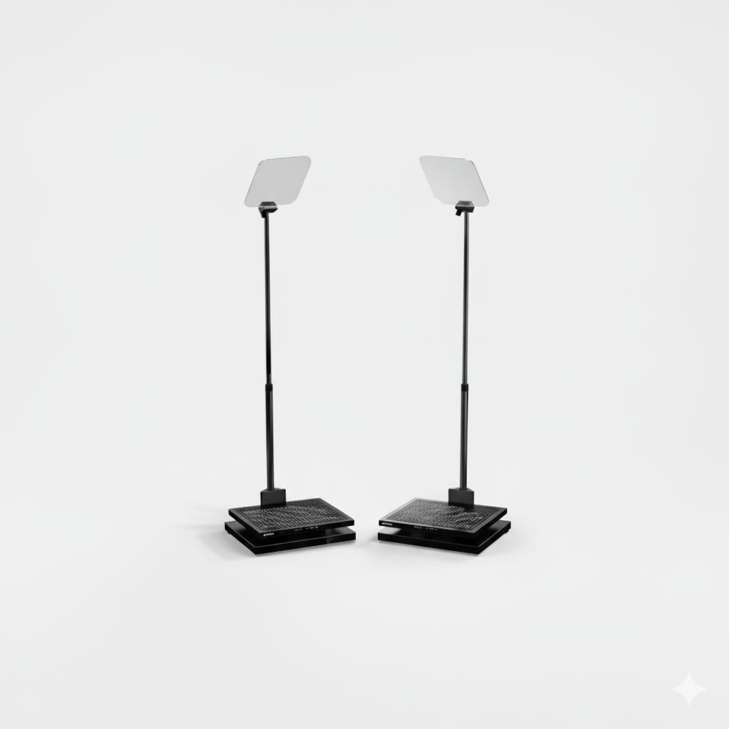 Nos prompteurs caméras allient légèreté, précision et fiabilité, assurant une lecture fluide et naturelle sur tous les plateaux, du tournage en studio au reportage terrain.