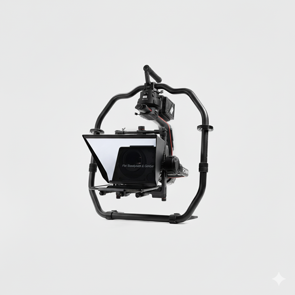 Nos prompteurs Steadicam, Ronin et Easyrig, conçus et développés par HelloPrompteur, offrent une parfaite intégration à ces systèmes, garantissant stabilité, légèreté et une lecture fluide même en mouvement.